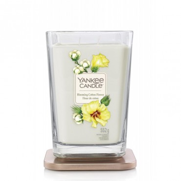 Elevation duża świeca Blooming Cotton Flower Yankee Candle. Delikatne drzewne nuty połączone z zapachem rozkwitających w słońcu kwiatów bawełny.