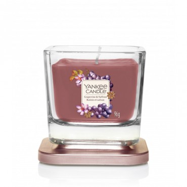 Elevation mała świeca Grapevine & Saffron Yankee Candle. Przechadzka po zalanej promieniami słońca winnicy. Zapach dojrzałych winogron połączony z nutą szafranu i drzewa sandałowego.