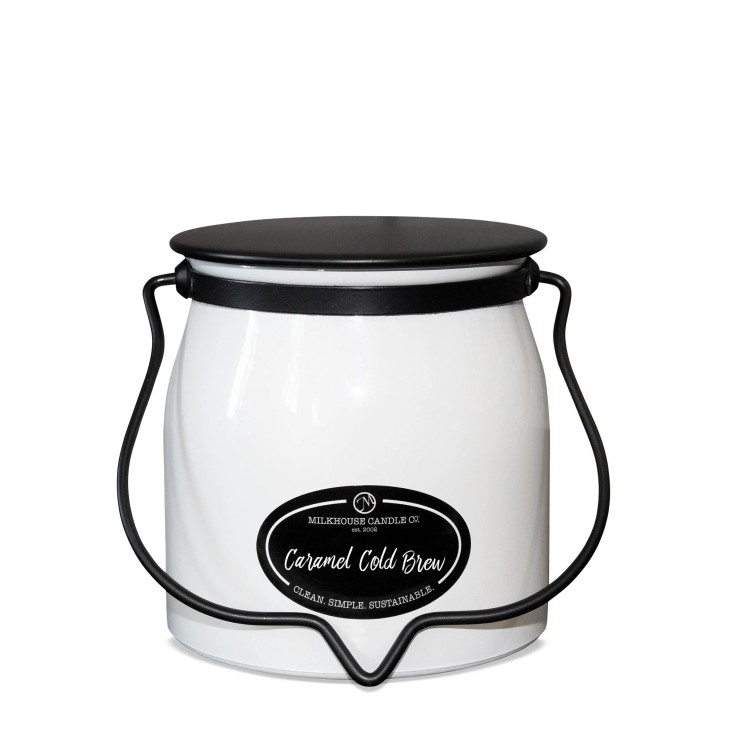 Średnia świeca Caramel Cold Brew Milkhouse Candle. Orzeźwiający urok mocnej kawy parzonej na zimno miesza się z rozkosznymi nutami kremowej mlecznej czekolady, gładkiego karmelu i nutą wanilii.