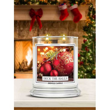 Średnia świeca Deck The Halls Kringle Candle. Zapach Kringle Candle's Deck the Halls tworzy kojącą i ciepłą atmosferę. Aromaty lasek cynamonu, które mieszają się z kremową fasolką tonka i pikantnymi goździkami, są optymalnie uzupełniane delikatnym bursztynem i słodzonymi migdałami.