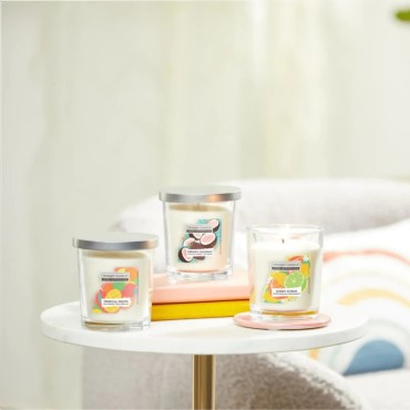 Średnia świeca Sunny Citrus Home Inspiration Yankee Candle - Orzeźwiająca mieszanka zapachowa - cytrusy zmieszane z cierpkim zielonym jabłkiem i słodką nutą mandarynki.