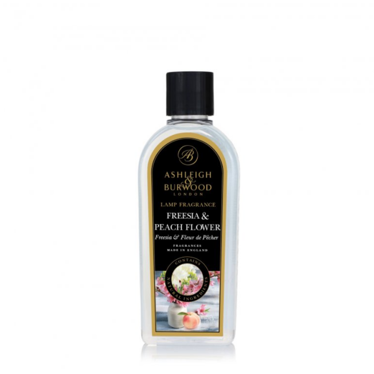 Wkład do Lampy Zapachowej Freesia & Peach Flower 500ml Ashleigh & Burwood - Świeża brzoskwinia i różowa malina współgrają z lekkimi, kremowymi płatkami białej frezji, podkreślonymi słodkimi nutami cukierków.