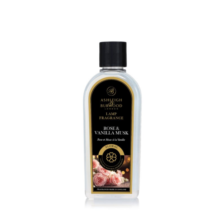 Wkład do Lampy Zapachowej Rose & Vanilla Musk 500ml Ashleigh & Burwood - Nowoczesna interpretacja klasycznej róży – ten zapach oferuje kojący, aksamitny, kwiatowy aromat. Lekko prażone nuty wanilii ustępują miejsca słodkim płatkom róż, oprószonym pudrowym piżmem kaszmirowym, by otulić Twój dom spokojem.