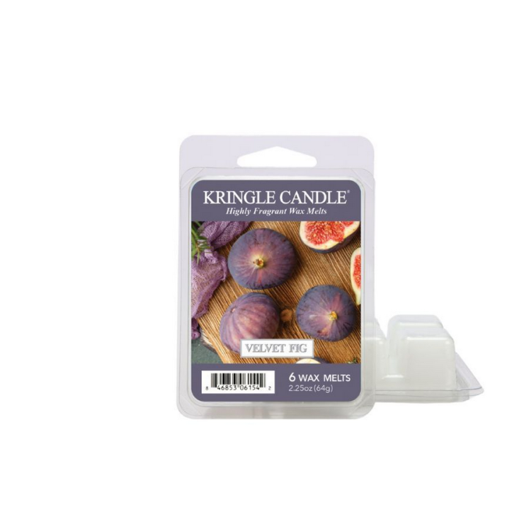 Wosk Velvet Fig Kringle Candle - Velvet Fig otula Cię ciepłem złotych liści i zapadającego zmierzchu, gdzie słodki koniak unosi się w powietrzu niczym cichy toast za sezon. Soczysta, dojrzała figa przechodzi w kremowe serce, bogate i rozkoszne. Zakotwiczony ambrą, tonką i głębokim drewnem, zapach utrzymuje się niczym miękki uścisk znoszonego kaszmirowego swetra.